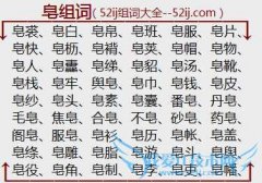 组词大全详解[皂组词]如:皂裘、皂白、皂帛、皂班、皂服、皂片、皂快、皂枥、皂褙、皂荚、皂帽、皂物、皂人、皂纛、皂绨、皂貂、皂汤、皂靴、皂栈、皂牢、舆皂、皂巾...