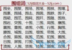 组词大全详解[围组词]如:围坐、围聚、围场、围堵、围棋、围堰、围裹、围捕、围击、围圆、围脖、围子、围裙、围范、围网、围歼、围随、围抱、围岩、突围、十围、三围...