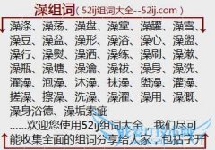 组词大全详解[澡组词]如:澡涤、澡荡、澡盘、澡堂、澡罐、澡雪、澡豆、澡盆、澡形、澡浴、澡心、澡盥、澡行、澡熨、澡洒、澡练、澡刷、澡漱、澡瓶、澡塘、澡瀹、澡祓...