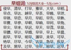 组词大全详解[早组词]如:侵早、清早、打早、豫早、大早、早稻、早点、早达、越早、早茶、早晚、早泄、早就、早恋、早月、早起、早先、早熟、早夏、早参、早朝、早晌...