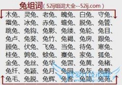 组词大全详解[兔组词]如:木兔、灵兔、老兔、魄兔、白兔、守兔、霜兔、冰兔、赤兔、蟾兔、脱兔、兔管、跳兔、兔钩、兔影、兔缕、兔轮、兔目、兔卢、兔葵、兔竹、兔褐...