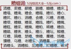 组词大全详解[糟组词]如:清糟、麦糟、醪糟、腊糟、糠糟、糟床、糟塌、糟淹、糟食、糟蹋、糟坊、糟心、糟扰、糟行、酒糟、食糟、污糟、香糟、糟堤、糟糠、糟蛋、糟践...