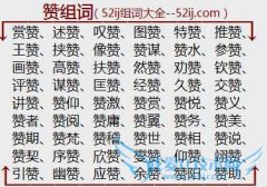 组词大全详解[赞组词]如:赏赞、述赞、叹赞、图赞、特赞、推赞、王赞、挟赞、像赞、赞谋、赞水、参赞、画赞、高赞、扶赞、然赞、劝赞、钦赞、评赞、谋赞、匡赞、经赞...