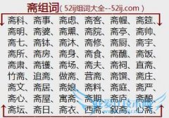组词大全详解[斋组词]如:斋科、斋事、斋虑、斋客、斋幄、斋筵、斋明、斋婆、斋熏、斋院、斋亭、斋帅、斋七、斋钵、斋沐、斋修、斋厨、斋宇、斋所、斋房、斋身、斋食...