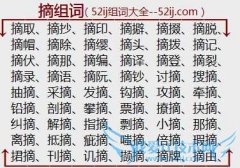 组词大全详解[摘组词]如:摘取、摘抄、摘印、摘擗、摘掇、摘脱、摘帽、摘除、摘缨、摘头、摘拨、摘记、摘伏、摘那、摘编、摘译、摘登、摘裂、摘录、摘语、摘阮、摘钞...