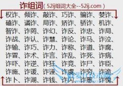 组词大全详解[诈组词]如:权诈、倾诈、敲诈、巧诈、骗诈、婪诈、磕诈、谲诈、局诈、矫诈、骄诈、机诈、智诈、诈罔、诈幻、诈反、诈忠、诈局、诈战、诈认、诈慧、诈论...