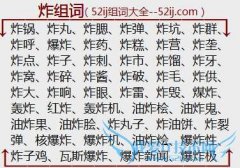 组词大全详解[炸组词]如:炸锅、炸丸、炸腮、炸弹、炸坑、炸群、炸呼、爆炸、炸药、炸糕、炸营、炸垄、炸点、炸子、炸刺、炸市、炸馏、炸牙、炸窝、炸碎、炸酱、炸破...