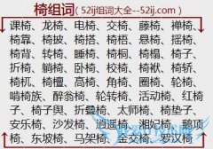 组词大全详解[椅组词]如:课椅、龙椅、电椅、交椅、藤椅、禅椅、椅靠、椅披、椅搭、椅梧、悬椅、摇椅、椅背、转椅、睡椅、椅桐、椅榻、椅子、折椅、躺椅、卧椅、校椅...