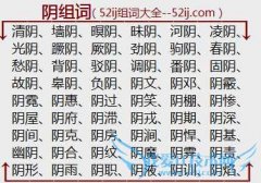 组词大全详解[阴组词]如:清阴、墙阴、暝阴、昧阴、河阴、凌阴、光阴、蹶阴、厥阴、劲阴、驹阴、春阴、愁阴、背阴、驳阴、调阴、番阴、固阴、故阴、皋阴、负阴、阴文...