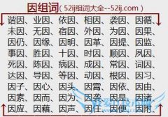 组词大全详解[因组词]如:谐因、业因、依因、相因、袭因、因循、未因、无因、宿因、外因、为因、因果、因仍、因缘、因明、因革、因提、因监、事因、胜因、十因、时因...