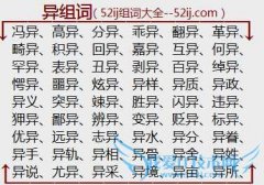 组词大全详解[异组词]如:冯异、高异、分异、乖异、翻异、革异、畸异、积异、回异、嘉异、互异、何异、罕异、表异、丑异、剥异、百异、绰异、愕异、噩异、炫异、异样...