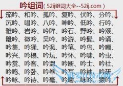 组词大全详解[吟组词]如:笳吟、和吟、孤吟、复吟、伏吟、分吟、沉吟、唱吟、八吟、呻吟、低吟、行吟、雅吟、岩吟、吟眸、吟石、野吟、吟颂、鼍吟、微吟、吴吟、吟游...