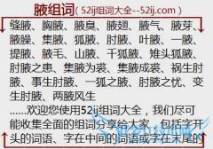组词大全详解[腋组词]如:缝腋、胸腋、腋臭、腋翅、腋气、腋芽、腋臊、集腋、狐腋、肘腋、叶腋、一腋、提腋、腋毛、山腋、千狐腋、雉头狐腋、肘腋之患、集腋为裘、集...