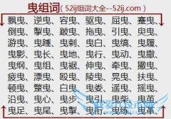 组词大全详解[曳组词]如:飘曳、逆曳、容曳、驱曳、屈曳、蹇曳、倒曳、掣曳、跛曳、拖曳、引曳、臾曳、游曳、曳踵、曳剌、曳白、曳缟、曳履、曳影、曳长、曳地、曳行...