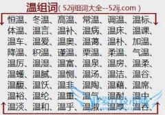 组词大全详解[温组词]如:恒温、冬温、高温、常温、调温、温标、体温、温言、温补、温病、温床、温课、温车、温爱、温奥、温蔼、温朴、加温、降温、积温、谨温、栗温...