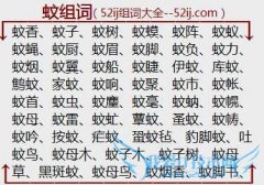 组词大全详解[蚊组词]如:蚊香、蚊子、蚊树、蚊蟆、蚊阵、蚊蚁、蚊蝇、蚊厨、蚊眉、蚊脚、蚊负、蚊力、蚊烟、蚊翼、蚊船、蚊睫、伊蚊、库蚊、鹪蚊、家蚊、蚊响、蚊聚...