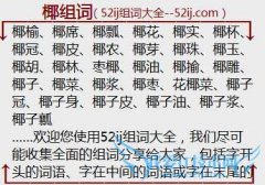 组词大全详解[椰组词]如:椰榆、椰席、椰瓢、椰花、椰实、椰杯、椰冠、椰皮、椰农、椰芽、椰珠、椰玉、椰胡、椰林、枣椰、椰油、椰揄、椰雕、椰子、椰菜、椰浆、椰枣...