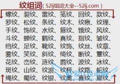组词大全详解[纹组词]如:螺纹、裂纹、雷纹、笺纹、回纹、款纹、罗纹、松纹、条纹、纹木、纹楸、纹理、手纹、饰纹、水纹、箍纹、饿纹、风纹、斗纹、蝉纹、鹤纹、真纹...