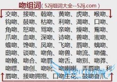 组词大全详解[吻组词]如:交吻、接吻、戟吻、黄吻、虎吻、喉吻、钩吻、鼓吻、枯吻、利吻、渴吻、口吻、角吻、怒吻、骂吻、亲吻、燥吻、觜吻、爪吻、血吻、深吻、诗吻...