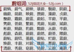 组词大全详解[蔚组词]如:蔚炳、蔚气、蔚映、雄蔚、翳蔚、阴蔚、幽蔚、荫蔚、映蔚、攒蔚、藻蔚、贞蔚、整蔚、霞蔚、蔚蓝、蔚起、芊蔚、平蔚、隽蔚、荟蔚、繁蔚、茺蔚...