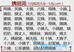 组词大全详解[姨组词]如:两姨、风姨、大姨、八姨、细姨、小姨、姨姐、姨丈、姨夫、姨兄、姨妈、阿姨、婆姨、娘姨、姨娘、贝姨、封姨、姨妹、姨弟、姨表、姨婆、姨父...