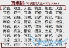 组词大全详解[宜组词]如:适宜、随宜、天宜、物宜、形宜、厌宜、宜称、宜子、宜愿、宜僚、宜修、宜男、宜民、宜禄、宜乘、宜适、珍宜、指宜、制宜、众宜、阿宜、宜当...