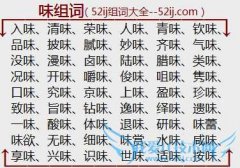 组词大全详解[味组词]如:入味、清味、荣味、人味、青味、钦味、品味、披味、腻味、妙味、齐味、气味、没味、漫味、卤味、陆味、腊味、类味、况味、开味、嚼味、俊味...