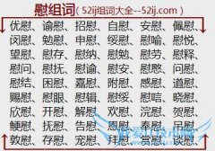组词大全详解[慰组词]如:优慰、谕慰、招慰、自慰、安慰、佩慰、闵慰、勉慰、申慰、绥慰、慰喻、慰悦、望慰、慰存、慰纳、慰勉、慰劳、慰释、慰问、慰抚、慰谕、慰安...