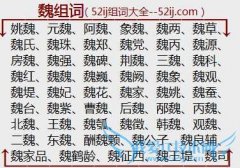 组词大全详解[魏组词]如:姚魏、元魏、阿魏、象魏、魏两、魏草、魏氏、魏珠、魏郑、魏党、魏丙、魏源、房魏、魏强、魏碑、荆魏、三魏、魏科、魏红、魏魏、魏巍、魏阙...