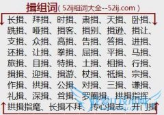 组词大全详解[揖组词]如:长揖、拜揖、时揖、肃揖、天揖、卧揖、跣揖、哑揖、揖客、揖别、揖逊、揖让、支揖、众揖、高揖、告揖、答揖、进揖、还揖、让揖、拳揖、屈揖...