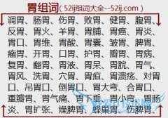 组词大全详解[胃组词]如:调胃、肠胃、伤胃、败胃、健胃、腹胃、反胃、胃火、羊胃、胃脯、胃癌、胃炎、胃口、胃维、胃酸、胃囊、皱胃、脾胃、瘤胃、开胃、口胃、护胃...