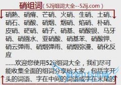 组词大全详解[硝组词]如:硝熟、硝瘠、芒硝、火硝、生硝、土硝、硝石、硝酸、硝烟、烟硝、焰硝、朴硝、皮硝、硭硝、硝子、硝基、硝酸银、马牙硝、硝镪水、亚硝酸、硝...