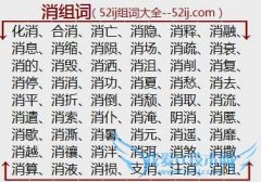组词大全详解[消组词]如:化消、合消、消亡、消隐、消释、消融、消息、消缩、消陨、消场、消疏、消衰、消的、消毁、消洒、消沮、消削、消复、消停、消消、消功、消夏...