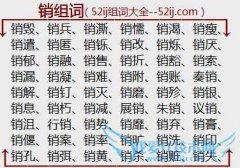 组词大全详解[销组词]如:销毁、销兵、销澌、销懦、销渴、销瘦、销遣、销匿、销铄、销改、销烁、销厌、销郁、销融、销售、销折、销豁、销索、销漏、销凝、销难、销附...