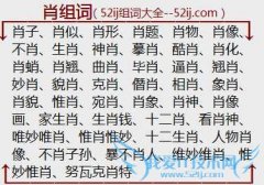 组词大全详解[肖组词]如:肖子、肖似、肖形、肖题、肖物、肖像、不肖、生肖、神肖、摹肖、酷肖、肖化、肖蛸、肖翘、曲肖、毕肖、逼肖、翘肖、妙肖、貌肖、克肖、僭肖...