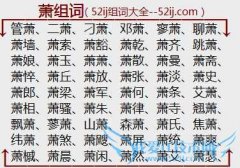 组词大全详解[萧组词]如:管萧、二萧、刁萧、邓萧、寥萧、聊萧、萧墙、萧索、萧豁、萧乾、萧齐、跳萧、萧娘、萧玉、萧萧、萧散、萧曼、萧斋、萧悴、萧丘、萧放、萧张...