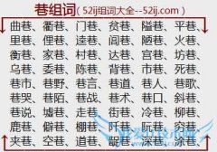 组词大全详解[巷组词]如:曲巷、衢巷、门巷、贫巷、隘巷、平巷、里巷、俚巷、逵巷、闾巷、陋巷、火巷、衡巷、家巷、村巷、达巷、宫巷、坊巷、乌巷、委巷、陈巷、背巷...