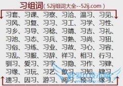 组词大全详解[习组词]如:习套、习课、习察、习洽、温习、习见、习风、习复、习习、习工、习学、习性、习乡、习导、习稔、习靖、习吉、习礼、习池、习态、习兵、习熟...
