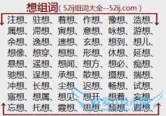 组词大全详解[想组词]如:注想、驻想、着想、作想、豫想、造想、属想、滞想、寅想、意想、咏想、游想、余想、逸想、遗想、玄想、想到、想儿、想像、想穿、想想、形想...