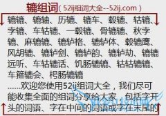 组词大全详解[辘组词]如:辘辘、辘轴、历辘、辘车、毂辘、轱辘、孛辘、车轱辘、一毂辘、骨辘辘、秋孛辘、麻辘辘、辘轳格、辘轳体、毂辘鹰、风胡辘、辘轳剑、辘轳韵、...