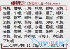 组词大全详解[幔组词]如:帏幔、帷幔、云幔、帐幔、毳幔、翠幔、窗幔、车幔、绮幔、幔帷、幔子、幔城、幔亭、幔室、幔帐、幔幕、幔屋、黎幔、酒幔、锦幔、黄幔、佛幔...