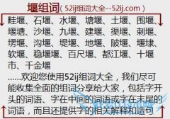 组词大全详解[堰组词]如:畦堰、石堰、水堰、塘堰、土堰、围堰、堰塘、沙堰、九堰、建堰、渠堰、剌堰、塄堰、沟堰、堤堰、地堰、陂堰、堰埭、软堰、稳堰堰、百尺堰、...