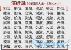 组词大全详解[演组词]如:排演、拍演、湎演、漫演、妙演、路演、教演、加演、会演、潜演、传演、抽演、唱演、般演、饰演、蜕演、推演、宛演、展演、籀演、滋演、重演...