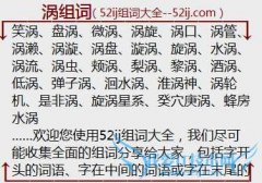 组词大全详解[涡组词]如:笑涡、盘涡、微涡、涡旋、涡口、涡管、涡濑、涡漩、涡盘、漩涡、旋涡、水涡、涡流、涡虫、颊涡、梨涡、黎涡、酒涡、低涡、弹子涡、洄水涡、...