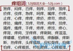 组词大全详解[痒组词]如:煞痒、闷痒、百痒、刺痒、泪痒、揩痒、疥痒、伎痒、急痒、呵痒、嘴痒、作痒、止痒、心痒、痒痒、痒疥、痒苛、痒疹、痒处、痛痒、发痒、苛痒...