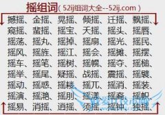 组词大全详解[摇组词]如:撼摇、金摇、晃摇、倾摇、迁摇、飘摇、窥摇、蜚摇、摇宝、夭摇、摇头、摇唇、摇荡、摇丸、摇掉、摇扇、摇光、摇民、摇风、摇旌、摇江、摇会...