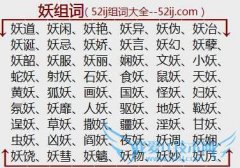 组词大全详解[妖组词]如:妖道、妖闲、妖艳、妖异、妖伪、妖冶、妖诞、妖忌、妖娇、妖言、妖幻、妖孽、妖韶、妖服、妖丽、娴妖、文妖、小妖、蛇妖、射妖、石妖、食妖...
