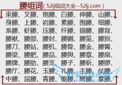 组词大全详解[腰组词]如:束腰、叉腰、抱腰、白腰、伸腰、山腰、身腰、上腰、岩腰、素腰、围腰、细腰、系腰、虾腰、压腰、纤腰、撷腰、腰背、腰袱、腰部、腰封、腰铡...