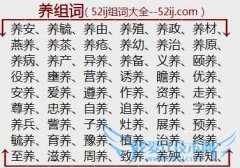 组词大全详解[养组词]如:养安、养毓、养由、养殖、养政、养材、燕养、养茶、养疮、养幼、养治、养原、养病、养产、异养、养备、义养、颐养、役养、壅养、营养、诱养...