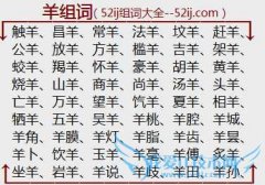 组词大全详解[羊组词]如:触羊、昌羊、常羊、法羊、坟羊、赶羊、公羊、放羊、方羊、槛羊、吉羊、架羊、蛟羊、羯羊、怀羊、豪羊、胡羊、黄羊、烧羊、山羊、商羊、尚羊...